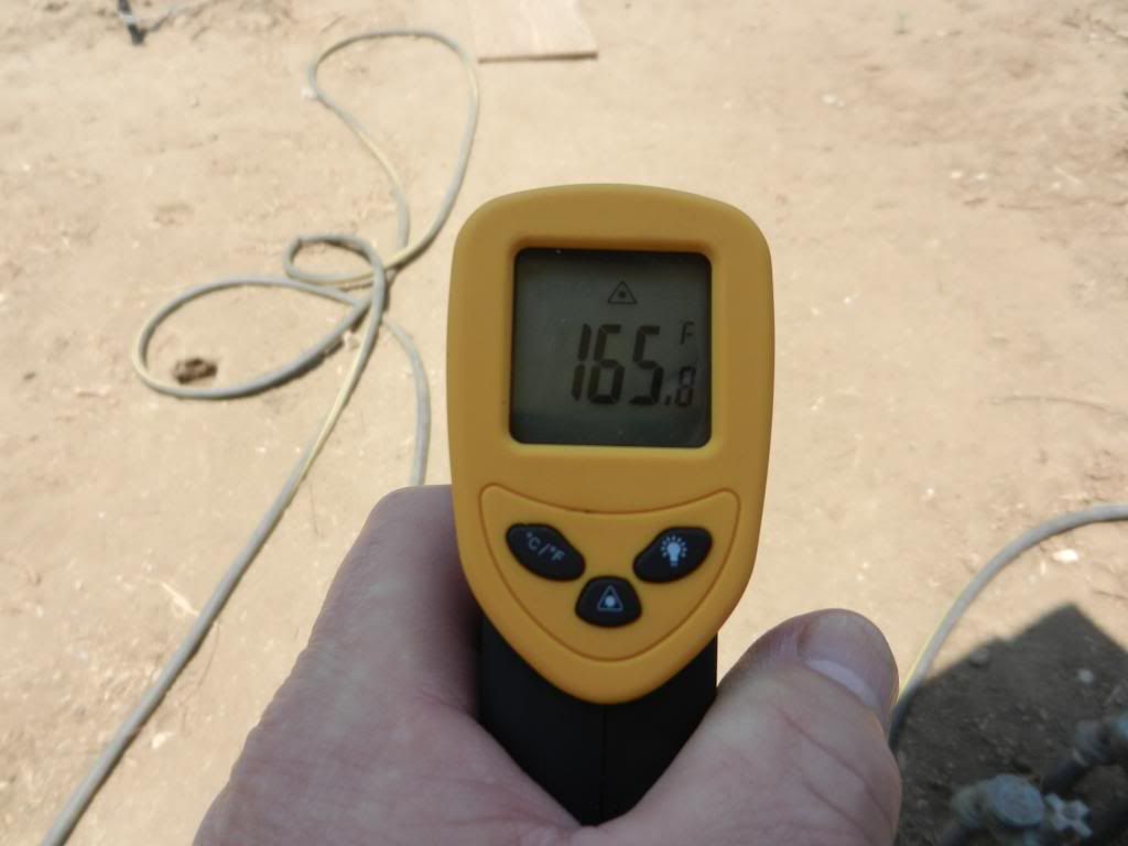 165.8 degrees was the temp of the soil. some sand in a fire pit